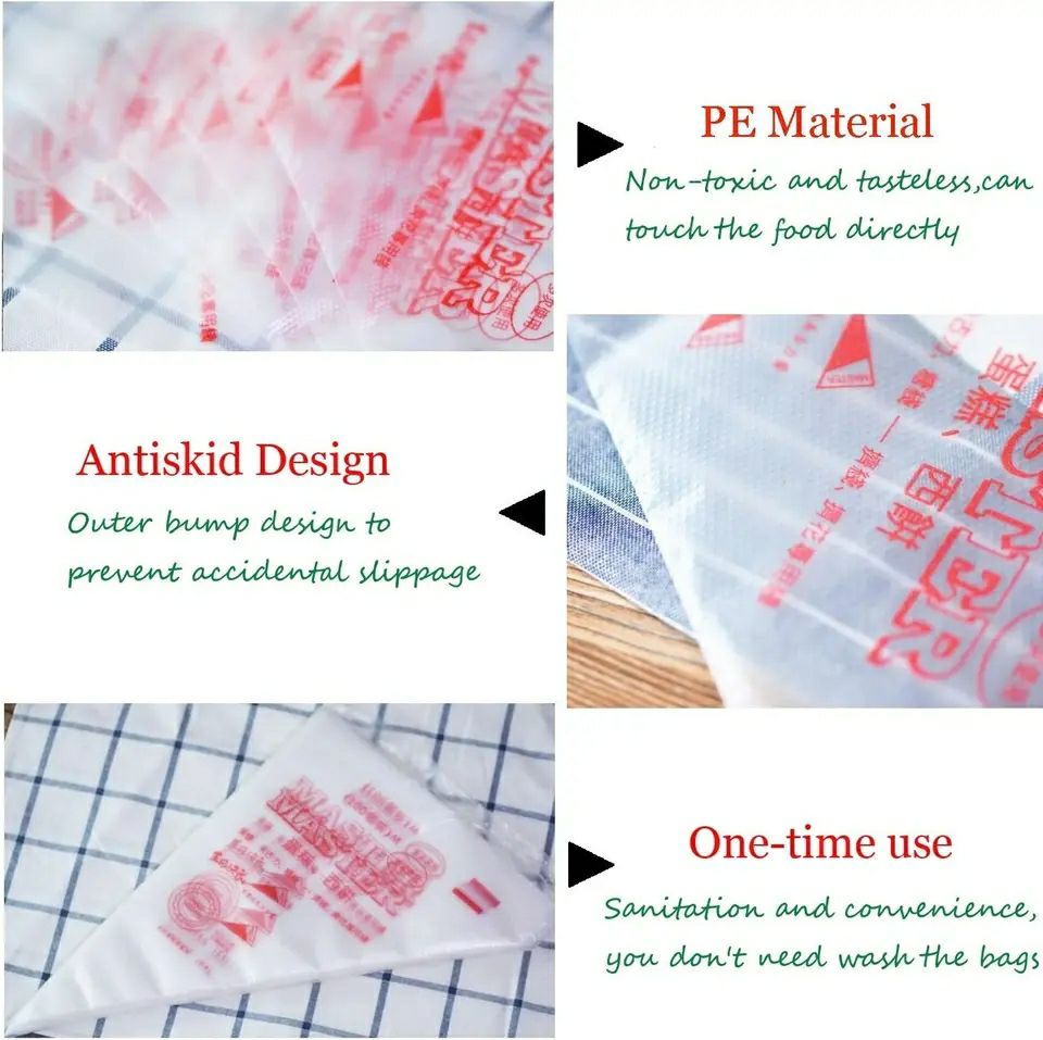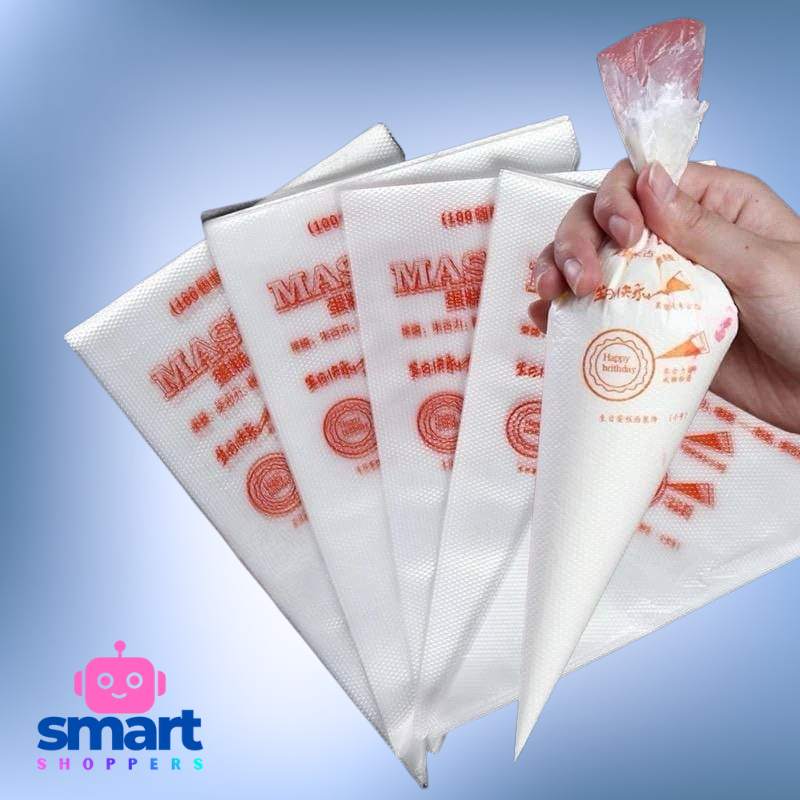 • خامة متينة وسميكة: أكياس بلاستيكية قوية تتحمل الكريمات الثقيلة، عجينة البيتي فور، والشوكولاتة دون خوف من تسرب المحتويات.