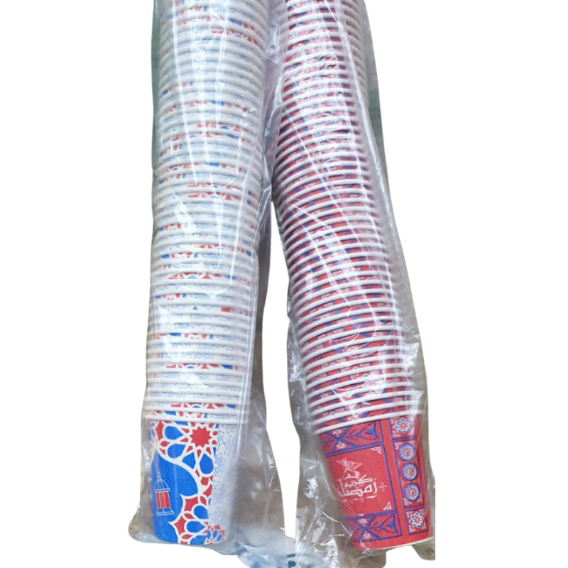 ✅ باكت يحتوي على 50 كوب كرتون برسومات رمضانية وخيامية رائعة.