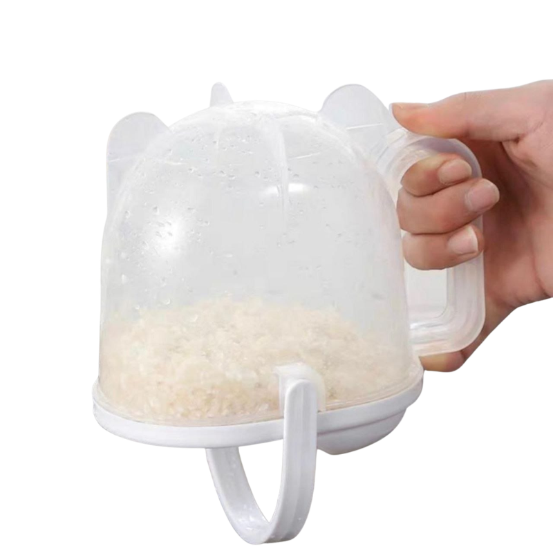 • دورق غسيل الأرز: تصميم عبقري بيسهل غسيل الرز وتصفيته من المياه بسرعة وبدون ما تقع منه ولا حباية.
